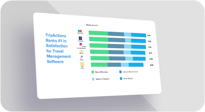 Score out of 10 9.00 TripActions TripActions 8.88 TravelPerk Ranks #1 in 8.79 Emburs Satisfaction e Certify Expense 8.57 for Travel Egencia Management 8.56 Rydoo Software 8.09 SAP Concur Ease of Business Likely to Recommend Quality of Support Other Factors